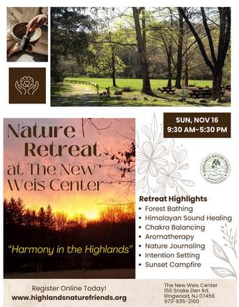 Step away from the noise and into the stillness of nature! Join us for a restorative day of mindfulness, reflection, and peace at the New Weis Center. Surrounded by the natural beauty and serenity of the New Jersey Highlands on our beautiful 152 acres of forested land, this retreat is designed to help you reconnectβwith nature, yourself, and the present moment.