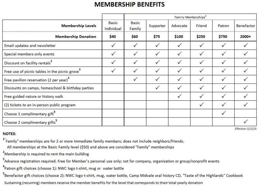 Membership at any level is appreciated, but we hope you will consider joining at a higher level! Not sure if you are a current member? Contact Us.